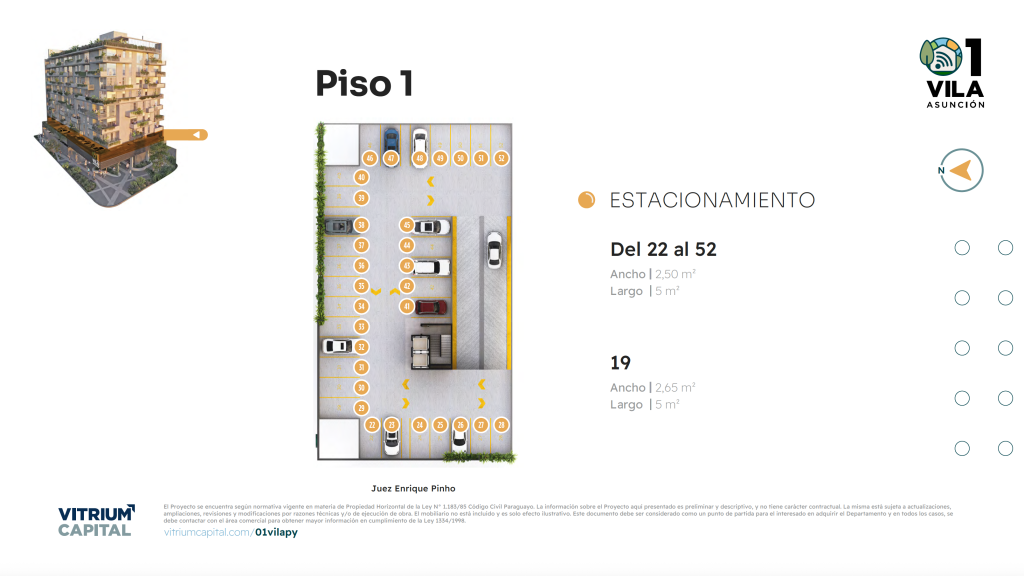 52 vagas de garagem, com bicicletário, distribuídas no 1º andar